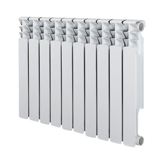 В биметаллическом радиаторе AAA 500 применяются два металла - сталь и алюминий. Стальной сердечник усиливает конструкцию биметаллических радиаторов. Стальная начинка биметаллических радиаторов спокойнее реагирует на щелочность воды. Поверхностный слой алюминий имеет высокую теплопроводность, что существенно улучшает теплоотдачу биметаллического радиатора и уменьшает его инертность.