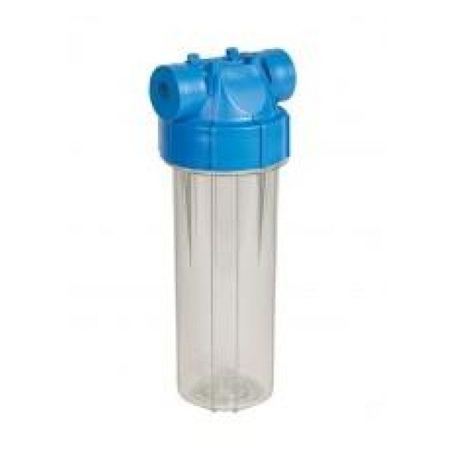 Натрубный корпус фильтра с прозр. стаканом и синей крышкой, возд. клапан, пластиковая резьба 3/4", 6 bar, 2 упл. кольца, ИТАЛЬЯНСКИЙ СТИЛЬ, новинка !