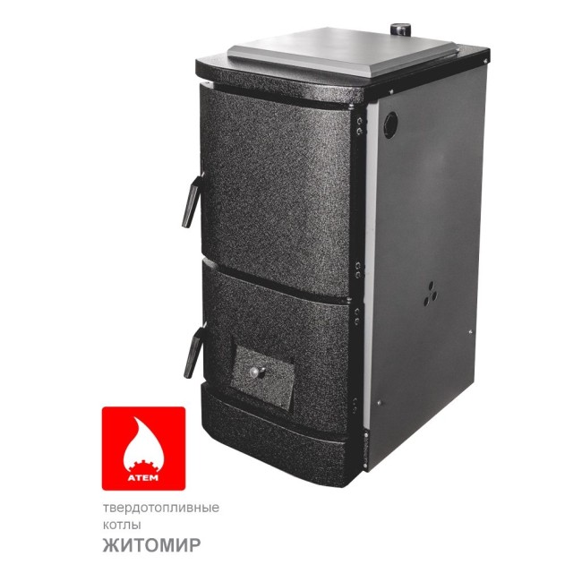 АТЕМ Житомир АКТВ-14 - с плитой одноконтурный, универсальный твердотопливный (дровяной) котел предназначен для отопления на разных видах твердого топлива - уголь, дрова, щепуи, тырса, брикеты и др. Котел предназначен для нагрева на плите (варочной поверхности 1 комфортка) продуктов в стандартной посуде в бытовых нуждах .