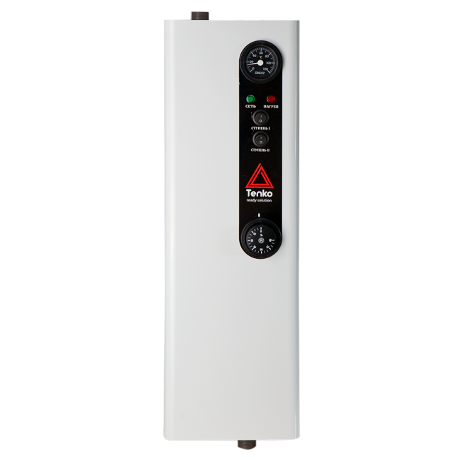 Лінійка електричних котлів «Економ» виробництва компанії Tenko призначена для опалення в автономній режимі приміщень площею до 150 кв.м. або як додатковий пристрій в діючій системі опалення. Серія котлів «Економ» оснащена двоступеневої системою захисту, яка запобігає руйнуванню пристрою від перегріву, італійським капілярним термостатом IMIT, плавно регулює температуру теплоносія системи в діапазоні 0 – 90°С, аналоговим термометром, світловими індикаторами для візуального контролю роботи, а також виведенням для підключення циркуляційного насоса.  Модельний ряд складається з котлів потужністю від 3 до 15 кВт, що мають три ступені нагріву. Підключення устаткування здійснюється в однофазні або трифазні мережі напругою 230 В або 400 В відповідно.  До переваг електричних котлів торгової марки Tenko відносяться: високий коефіцієнт корисної дії (ККД), простота технічного обслуговування, екологічна чистота, надійність, зручність монтажу, експлуатації та транспортування. У поєднанні з невисокою ціною і низькими експлуатаційними витратами електрокотли серії «Економ» стали ідеальним варіантом по співвідношенню якості, функціональних можливостей і вартості.