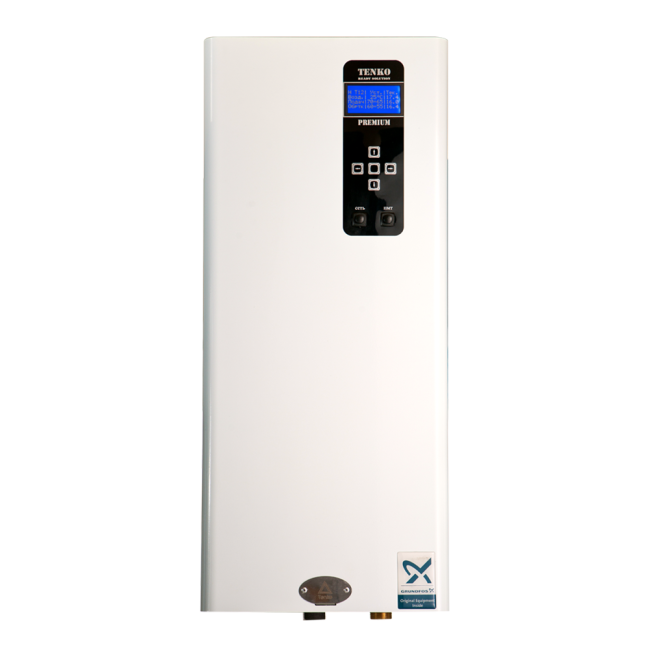 Електричні котли серії «Преміум» ТМ Tenko надають широкі можливості для управління роботою пристрою і забезпечують максимальний комфорт і автономність експлуатації при опаленні різних приміщень з максимальною площею 150 кв.м. Представлена лінійка обладнання відрізняється наявністю вбудованого мікроконтролера і програмної системи управління для повного контролю працездатності котла. Модель котла «Преміум» має цифровий дисплей для настройки і відображення сервісної інформації від трьох датчиків температури: кімнатного (проводового або радіо), датчиків на прямому і зворотному трубопроводах системи опалення. Мікроконтролер здійснює управління блоків ТЕНів і реле, а вбудований програмний лічильник електроенергії веде статистику і дозволяє оптимізувати роботу. Безшумна робота при комутації забезпечується твердотільними реле з водяним охолодженням. всі моделі електрокотлів «Преміум» виробництва компанії Tenko укомплектовані циркуляційним насосом , датчиком тиску, автоматичним відвідників повітря, запобіжним клапаном і недельно/добовим програматором, яким можливо керувати за допомогою wi-fi модуля. Дистанційне керування котлом здійснюється через будь-який браузер або додаток на Android.