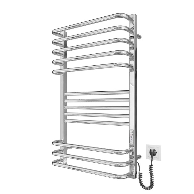 Электрический полотенцесушитель Гера-Люкс-I 800x500/170 TR с регулятором времени и температуры нагрева. Регулировка температуры в трех режимах: 40°С, 45°С, 50°С. Полотенцесушитель Гера-Люкс-I производственного предприятия Марио, высотой 800 мм, шириной 530 мм. Номинальная мощность 200 W. Полотенцесушитель оборудован таймером, который позволяет установить время нагрева на 3 и 6 часов, или переключить режим работы на постоянный нагрев.