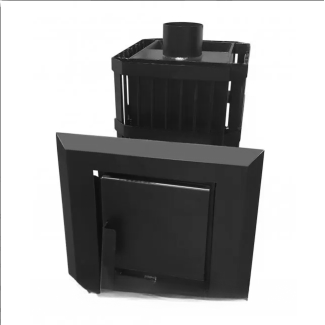 Печь для бани Камянка, рассчитана до 20м3. Все детали печи вырезаны на лазере и собраны профессиональными сварщиками, благодаря чему печь ровная и всегда одинакового размера. Тело печи усилено ребрами жесткости, что продлевает срок ее использования. В теле печи расположены два треугольника, которые являются отбойниками, находящимися снаружи, а не в середине, как в других печах, что снижает время разогрева парной. Большой совок для пепла. Печь монтируется через стену, что позволяет сэкономить место в парной. Сменный колосник. Регулирующие ножки для установки печи на неровной поверхности. Длина полена до 50см. Дымоход 120мм. Количество камней 100кг. +-