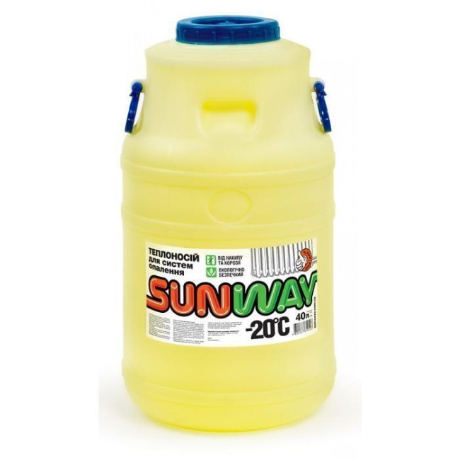 Теплоноситель для защиты автономных систем отопления от коррозии и замерзания SUNWAY 40 л может применяться в отопительных системах, основанных на газовых, электрических или твердотопливных котлах. Теплоноситель также можно применять в системах на основе теплонасосов и солнечных коллекторах.