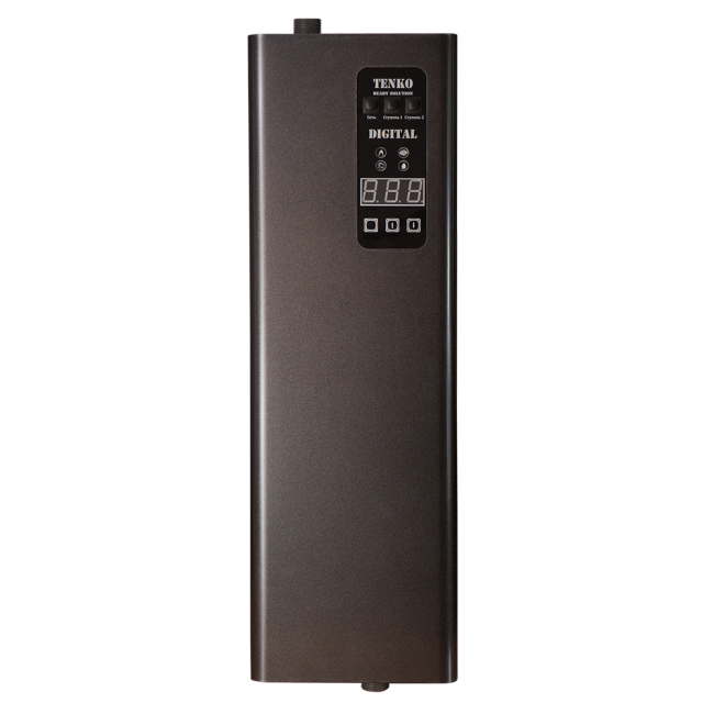 Серия электрических котлов  “Digital” производства компании Tenko предназначена для отопления помещений площадью до 150 кв.м. или как дополнительное устройство в действующей системе отопления. Серия котлов “Digital” создана как альтернатива серии котлов КЕ, оснащена возможностью управления включения/выключения насоса до или после включения тэнов, двухступенчатой системой защиты, которая предохраняет устройство от перегрева, двумя датчиками температуры, защитным модульным контактором. Теплоноситель в системе регулируется плавно в диапазоне 20-75°С. Модельный ряд  состоит из котлов мощностью от 3 до 15 кВт. Подключение возможно к сети 230В и 400В. К преимуществам электрокотлов серии “Digital” относятся: высокий коэффициент полезного действия (КПД), электронное управление, надежность, простота технического обслуживания, экологическая чистота. Детали корпуса выполнены из высококачественной стали и прошли антикоррозийную обработку. В дальнейшем на них наносится порошковая краска для создания защитного слоя и придания красивого внешнего вида. В процессе изготовления теплообменника используется исключительно высококачественная толстостенная труба, которая для продления срока службы проходит антикоррозийную обработку и гидравлические испытания при давлении в 8 бар. В комплект поставки входит руководство по монтажу и эксплуатации.