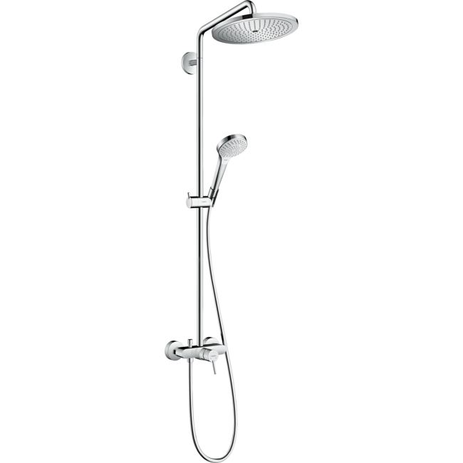 Душевая система hansgrohe Croma Select S Showerpipe 280 1jet 26791000 хром — это воплощение немецкого качества, инновационных технологий и стильного современного дизайна для вашей ванной комнаты. Этот комплект сочетает в себе функциональность и эстетику, обеспечивая комфортные водные процедуры каждый день. Главной особенностью данной душевой системы является большой верхний душ диаметром 280 мм с технологией RainAir, создающей мягкий и расслабляющий поток воды, схожий с теплым летним дождём. Благодаря функции QuickClean, известковые отложения легко удаляются простым протиранием, а технология AirPower обогащает воду воздухом, делая струю более объёмной и нежной для кожи. Ручной душ с одним режимом струи позволяет быстро освежиться, а переключение между верхним и ручным душем осуществляется легко и интуитивно благодаря встроенному переключателю. Высококачественное хромированное покрытие устойчиво к царапинам и сохраняет безупречный блеск долгие годы. Стильный и лаконичный дизайн гармонично впишется в любой современный интерьер ванной комнаты. В комплект входят все необходимые элементы для монтажа: штанга, держатель, шланг длиной 1,6 м и крепления. Душевая система hansgrohe Croma Select S Showerpipe 280 1jet 26791000 артикул 26791000 станет идеальным выбором для тех, кто ценит комфорт, долговечность и немецкое качество. Заказывайте душевую систему hansgrohe Croma Select S Showerpipe 280 1jet 26791000 онлайн в нашем интернет-магазине с быстрой доставкой по всей Украине. Гарантия производителя 5 лет — ваш спокойствие и уверенность в надежности покупки!