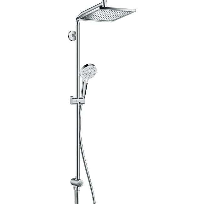 Душевая система hansgrohe Crometta E 240 1jet Showerpipe Reno EcoSmart 27289000 хром – это идеальное сочетание современного дизайна, высочайшего качества и инновационных технологий для вашего комфорта в ванной комнате. Изделие от немецкого бренда hansgrohe отличается элегантным внешним видом благодаря прямоугольной верхней душевой лейке размером 240 мм и стильному хромированному покрытию, которое придаёт интерьеру ванной особую элегантность и современность. Главная особенность душевой системы – технология EcoSmart, которая позволяет экономить воду, снижая расход до 9 л/мин без ущерба для интенсивности и комфорта водных процедур. Это не только забота об окружающей среде, но и о вашем бюджете. Однорежимная душевая лейка обеспечивает равномерное и мягкое распределение воды, позволяя наслаждаться приятным дождевым душем Rain. Благодаря системе QuickClean, вы легко очистите форсунки от известковых отложений одним движением руки. Душевая система hansgrohe Crometta E 240 1jet Showerpipe Reno EcoSmart 27289000 (артикул 27289000) оснащена термостатическим смесителем, который поддерживает стабильную температуру воды и защищает от перепадов давления, гарантируя безопасность для всей семьи. Легкий монтаж, универсальная совместимость с большинством водопроводных систем и эргономичные элементы управления делают эту модель оптимальным выбором для современных ванных комнат. Покупайте душевую систему hansgrohe Crometta E 240 1jet Showerpipe Reno EcoSmart 27289000 (хром) онлайн в нашем магазине и получите быструю доставку по всей Украине. Мы предоставляем официальную гарантию 5 лет — ваше спокойствие и комфорт гарантированы! Оформляйте заказ прямо сейчас и преобразите вашу ванную комнату с hansgrohe!