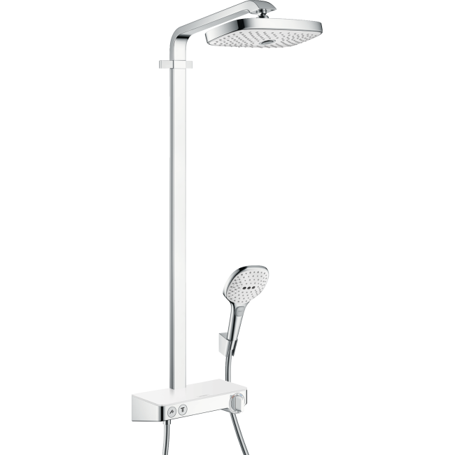 Душевая система hansgrohe Raindance Select E 300 2jet Showerpipe с термостатом, белый/хром 27126400 — это инновационное решение для современных ванных комнат, сочетающее в себе элегантный дизайн, немецкое качество и передовые технологии водных процедур. Благодаря большому верхнему душу размером 300 мм и двум режимам струи (RainAir и RainStream), вы получаете максимум удовольствия от каждого принятия душа. Технология AirPower обогащает воду воздухом, делая капли мягкими и объемными, а QuickClean обеспечивает легкую очистку от известкового налета. В комплекте — стильный термостат Ecostat Comfort, который обеспечивает мгновенный и точный контроль температуры воды, предотвращая перепады и гарантируя безопасность для всей семьи. Эргономичная ручка Select позволяет легко переключаться между режимами струи, а хромированная поверхность с белыми элементами добавляет интерьеру свежести и индивидуальности. Душевая система Hansgrohe Raindance Select E 300 2jet Showerpipe изготовлена из высококачественных материалов, устойчива к коррозии и износу, что подтверждается официальной гарантией производителя в 5 лет. Эта душевая система идеально подходит для тех, кто ценит комфорт, надежность и стиль. С её помощью ежедневные водные процедуры превращаются в настоящий SPA-ритуал у вас дома. Вы можете приобрести душевую систему hansgrohe Raindance Select E 300 2jet Showerpipe с термостатом, белый/хром 27126400 онлайн на нашем сайте — мы обеспечиваем быструю доставку по всей Украине и официальный сервис. Сделайте шаг к настоящему комфорту уже сегодня!