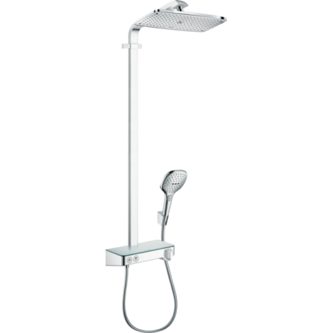 Душевая система hansgrohe Raindance E Showerpipe 360 1jet с комплектом для душа Select 300 27288000 хром — это воплощение немецкого качества, инновационных технологий и современного стиля для вашей ванной комнаты. Эта модель, от ведущего бренда Hansgrohe, создана для тех, кто ценит комфорт, эргономику и безупречный дизайн. Стильная душевая система выполнена в элегантном хромированном покрытии, которое не только придаёт изысканный вид, но и обеспечивает долговечность устройства. Верхний душ Raindance E 360 с технологией AirPower насыщает воду воздухом, создавая объёмные, мягкие капли, которые приятно окутывают тело и дарят ощущение настоящего тропического ливня. Диаметр душевой лейки 360 мм гарантирует равномерное распределение воды по всей поверхности, обеспечивая невероятный комфорт от каждого принятия душа. Ручная лейка Hansgrohe Select 300 с функцией переключения струй одним нажатием кнопки позволяет выбрать наиболее подходящий режим — от интенсивного до расслабляющего. Благодаря системе QuickClean известковый налёт легко удаляется одним движением руки, что значительно упрощает уход за душевой системой. Интегрированный термостат обеспечивает точное поддержание температуры воды и защищает от перепадов давления, а технология EcoSmart способствует экономии воды без ущерба для комфорта. Простая установка и универсальная совместимость делают hansgrohe Raindance E Showerpipe 360 идеальным выбором для обновления любой ванной комнаты. Покупайте оригинальную душевую систему hansgrohe Raindance E Showerpipe 360 1jet с комплектом для душа Select 300 27288000 хром онлайн в нашем интернет-магазине. Мы осуществляем быструю доставку по всей Украине и предоставляем официальную гарантию от производителя сроком 5 лет. Обновите свою ванную комнату вместе с Hansgrohe — выберите качество, проверенное временем!