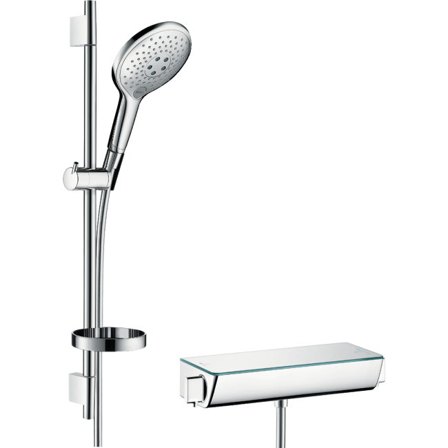 • состоит из: ручной душ, термостат для душа, душевая штанга, держатель, мыльница, шланг для душа