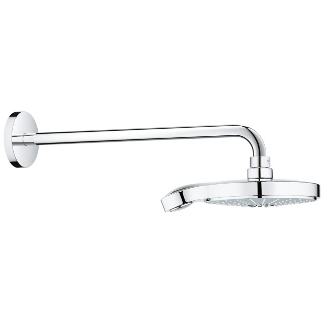 Power&Soul® Cosmopolitan 190 Верхний душ и душевой кронштейн 422 мм включает в себя: Power&Soul Cosmopolitan 190 Верхний душ (27765000) Душевой кронштейн Rainshower® 450 мм (26146000) GROHE DreamSpray® превосходный поток воды GROHE Long-Life Shine® хромированная поверхность с системой SpeedClean против известковых отложений может использоваться с проточным водонагревателем нормальная струя при давление от 0,5 бар