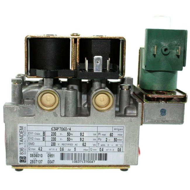 Клапан газовый 830 TANDEM (энергозависимый) для котлов до 60 кВт применяется как в котлах, так и в любом другом газовом оборудовании, которое требует точной регуляровки температуры. Является многофункциональным блоком управления, энергозависим (питание 230V-50Hz). Широкий диапазон термоэлемента от 40 до 90С, оснащен термопарой М10*1.