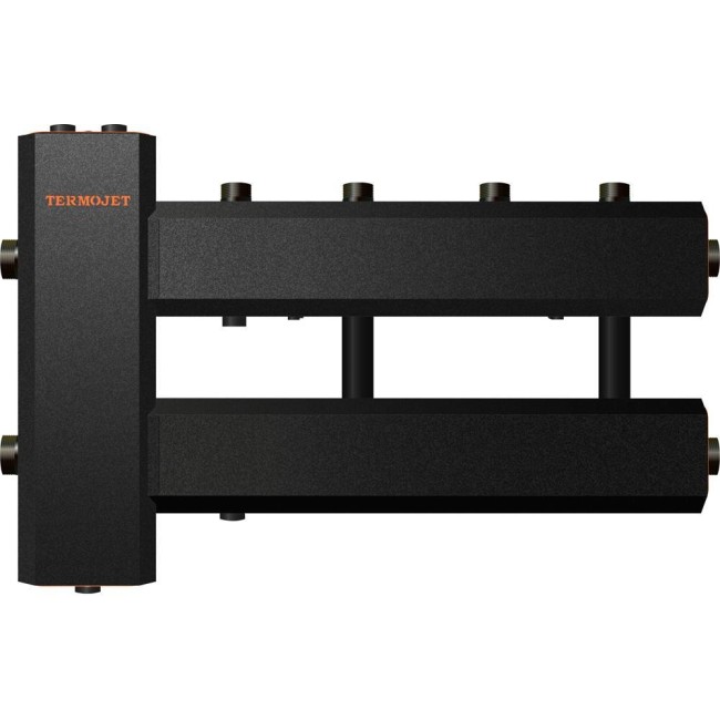 Коллектор с гидрострелкой Termojet КГС22В.125 (200) с выходами вверх. Коллектор используется в системах отопления, в которых необходимо распределить теплоноситель на несколько потребителей тепла с разными параметрами. В данный вид распределительных коллекторов встроен гидравлический разделитель ГС - 26 для обеспечения более лёгкого монтажа и экономии свободного пространства в котельной. В комплект поставки входят крепления к стене.