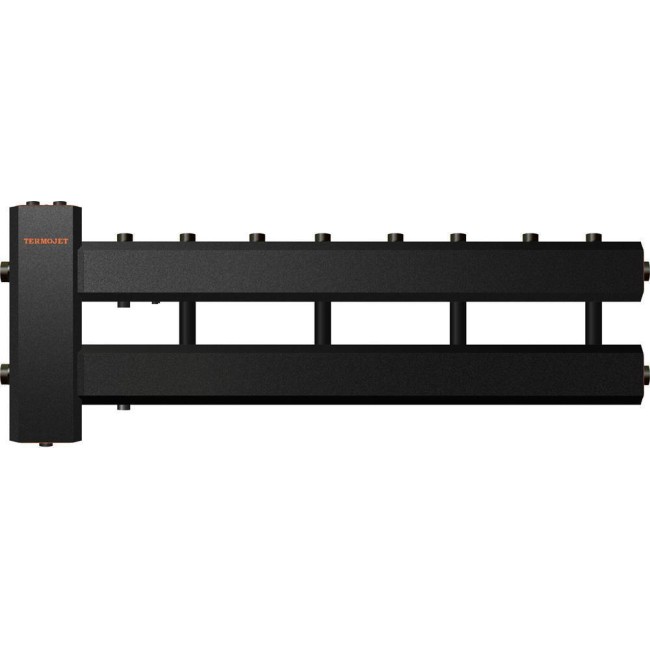 Коллектор с гидрострелкой Termojet КГС42В.125 (200) с выходами вверх. Коллектор используется в системах отопления, в которых необходимо распределить теплоноситель на несколько потребителей тепла с разными параметрами. В данный вид распределительных коллекторов встроен гидравлический разделитель ГС - 26 для обеспечения более лёгкого монтажа и экономии свободного пространства в котельной. В комплект поставки входят крепления к стене.