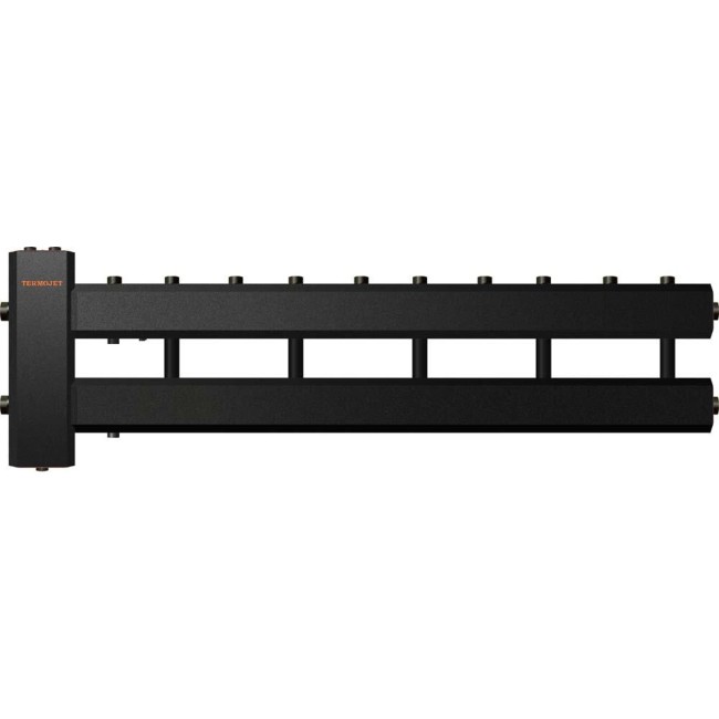 Коллектор с гидрострелкой Termojet КГС52В.125 (200) с выходами вверх. Коллектор используется в системах отопления, в которых необходимо распределить теплоноситель на несколько потребителей тепла с разными параметрами. В данный вид распределительных коллекторов встроен гидравлический разделитель ГС - 26 для обеспечения более лёгкого монтажа и экономии свободного пространства в котельной. В комплект поставки входят крепления к стене.