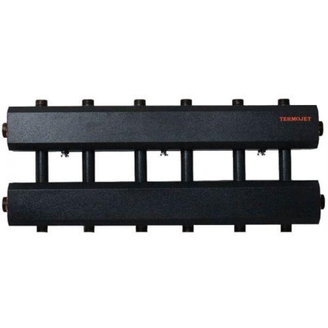 Коллектор Termojet К62ВН.125 (200) с выходами вверх и вниз. Коллектор используется в системах отопления, в которых необходимо распределить теплоноситель на несколько потребителей тепла с разными параметрами. Межосевое расстояние патрубков подключения контура потребителя тепла равняется 125 мм. В комплект поставки входят крепления к стене.