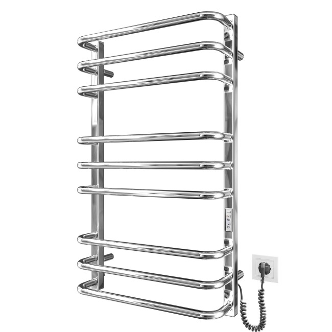 Электрический полотенцесушитель Премиум Стандарт-I 800x500/170 TR с регулятором времени и температуры нагрева. Регулировка температуры в трех режимах: 40°С, 45°С, 50°С. Полотенцесушитель Премиум Стандарт-I производственного предприятия Марио, высотой 800 мм, шириной 530 мм. Номинальная мощность 200 W. Полотенцесушитель оборудован таймером, который позволяет установить время нагрева на 3 и 6 часов, или переключить режим работы на постоянный нагрев.