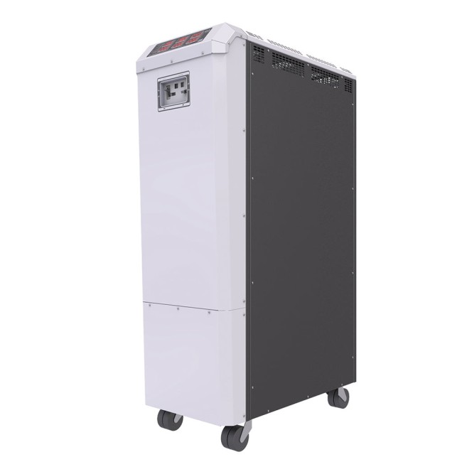 К особенностям данного стабилизатора можно отнести двойной LED-индикатор на фазу, линейная полоса загрузки, наличие механического транзита (байпас), напольное исполнение, наличие входных и выходных фильтров для защиты от высокочастотных помех, бесшумную работу за счет использования тороидальных трансформаторов и тиристорных ключей.