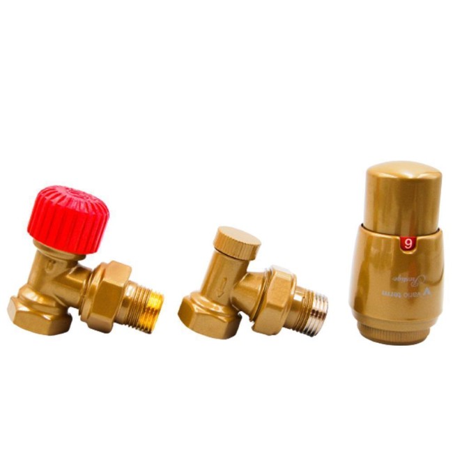 Установочный комплект „Elegant” предназначен для радиаторов в ванной, угловой или прямой. Угловой или прямой термостатический клапан, угловой или прямой запорный клапан, термостатическая головка Prestige.