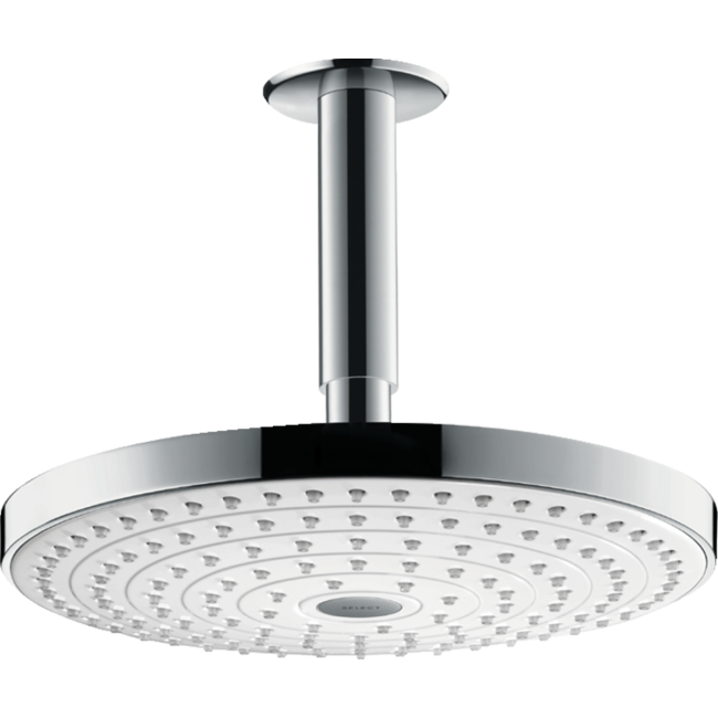 Лейка верхнего душа необходима в ванной комнате с акцентом на технологичность, практичность, удобство пользования сантехникой. Верхний душ 26467400 разработан в классической круглой форме, и при диаметре 240 мм полноценно обеспечивает ливневыми потоками воды в режиме RainAir и Rain. Прямо по центру лейки предусмотрена кнопка переключения струй, которая использована вместо поворотного диска.