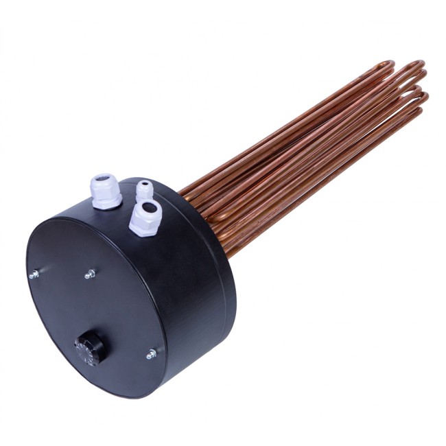 Нагревательный элемент непосредственно контактирует с водой. Настройка температуры производится с помощью термостата с внешним регулятором, расположенным на корпусе.