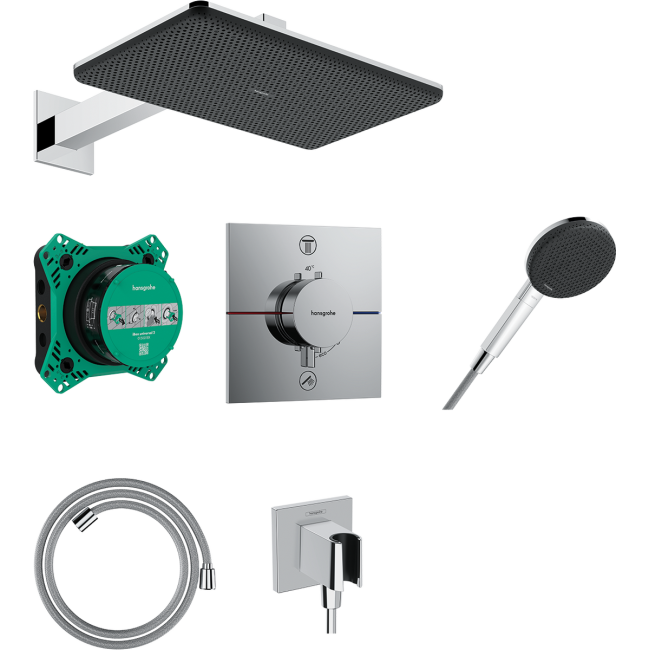 Душова система hansgrohe Raindance Alive Q 210/340 1jet, 24620000 хром — це втілення інноваційних технологій та німецької якості у вашій ванній кімнаті. Сучасний, лаконічний дизайн у хромованому виконанні ідеально доповнить будь-який інтер'єр, підкреслюючи вашу увагу до деталей та стилю. Головна перевага цієї душової системи — великий верхній душ Raindance Q 340, який забезпечує рівномірний, м’який і об’ємний потік води за технологією RainAir. Завдяки цьому кожен прийом душу перетворюється на справжній релакс та задоволення. Технологія QuickClean дозволяє легко очищати форсунки від вапняного нальоту — просто проведіть пальцем, і ваш душ знову як новий! Вбудований термостат гарантує стабільну температуру води, забезпечуючи максимальний комфорт та безпеку для всієї родини. Зручний перемикач Select дозволяє обрати потрібний режим одним натисканням, а система AirPower додає воді особливої м'якості, змішуючи її з повітрям. Душова система hansgrohe Raindance Alive Q 210/340 1jet, 24620000 хром — це оптимальне рішення для тих, хто цінує якість, функціональність та сучасний стиль. Простий монтаж, надійність у використанні та економія води — ідеальний вибір для сучасного дому. Не відкладайте своє задоволення на потім! Купуйте душову систему hansgrohe Raindance Alive Q 210/340 1jet, 24620000 хром онлайн прямо зараз у нашому магазині. Ми здійснюємо швидку доставку по всій Україні та надаємо офіційну гарантію 5 років. Обирайте комфорт та якість разом із hansgrohe!