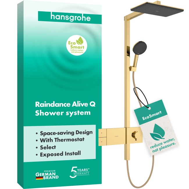 Душова система hansgrohe Raindance Alive Q 210/340 1jet EcoSmart з ShowerSelect Comfort, 24581990 золото ― це втілення сучасних технологій, преміальної якості та вишуканого стилю для вашої ванної кімнати. Інноваційна система поєднує у собі все необхідне для максимально комфортного та ефективного прийняття душу. Велика верхня лійка Raindance Alive Q 340 мм забезпечує рівномірний, м’який потік води, створюючи відчуття природного дощу. Додаткова ручна лійка Raindance Select E 120 з технологією 1jet дає можливість змінювати режими подачі води одним дотиком, забезпечуючи індивідуальний підхід для кожного користувача. Завдяки технології EcoSmart система споживає до 60% менше води, зберігаючи потужний напір — це ідеальний вибір для ощадливих та екологічно свідомих людей. Інтуїтивне управління здійснюється через стильну панель ShowerSelect Comfort, яка дозволяє легко обирати різні режими душу та налаштовувати ідеальну температуру води. Витончений золотий колір надає душовій системі розкішного вигляду та гармонійно доповнить інтер’єр сучасної ванної кімнати. Модель hansgrohe Raindance Alive Q 210/340 1jet EcoSmart з ShowerSelect Comfort, 24581990 золото — це не лише функціональність, а й довговічність: матеріали преміум-класу та фірмова німецька якість гарантують бездоганну роботу протягом багатьох років. Замовляйте душову систему hansgrohe Raindance Alive Q 210/340 1jet EcoSmart з ShowerSelect Comfort, 24581990 золото онлайн — швидка доставка по всій Україні та офіційна гарантія 5 років забезпечать ваш спокій та комфорт. Оновіть свою ванну кімнату разом із hansgrohe прямо зараз!