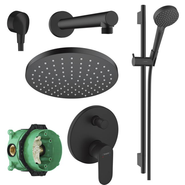 - Душовий набір hansgrohe Vernis Blend EcoSmart з штангою S Puro 65 см 26423670 матовий чорний