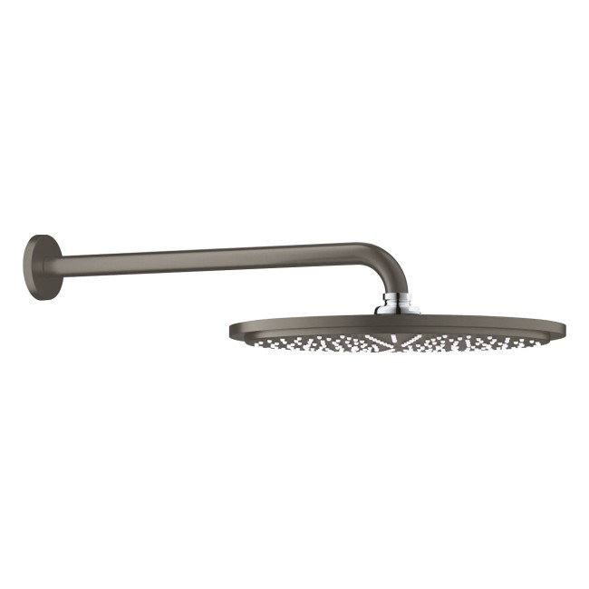 Розкішний набір верхнього душа GROHE Rainshower Cosmopolitan 310 в кольорі "матовий темний графіт" з душовим кронштейном 380 мм додасть дизайнерський стиль і преміальну якість в будь-яку ванну.