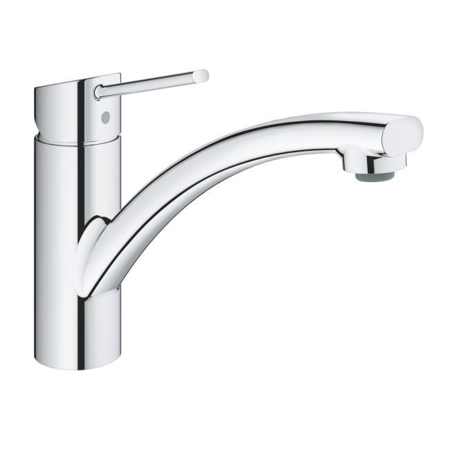 Вилив змішувача має кут повороту 140 градусів - відмінне рішення для невеликих кухонь з малою кількістю вільного простору. Управління здійснюється за допомогою надійної рукоятки, а всередині змішувача захований керамічний картридж GROHE SilkMove, який пропонує точне та плавне керування температурою та напорами води.