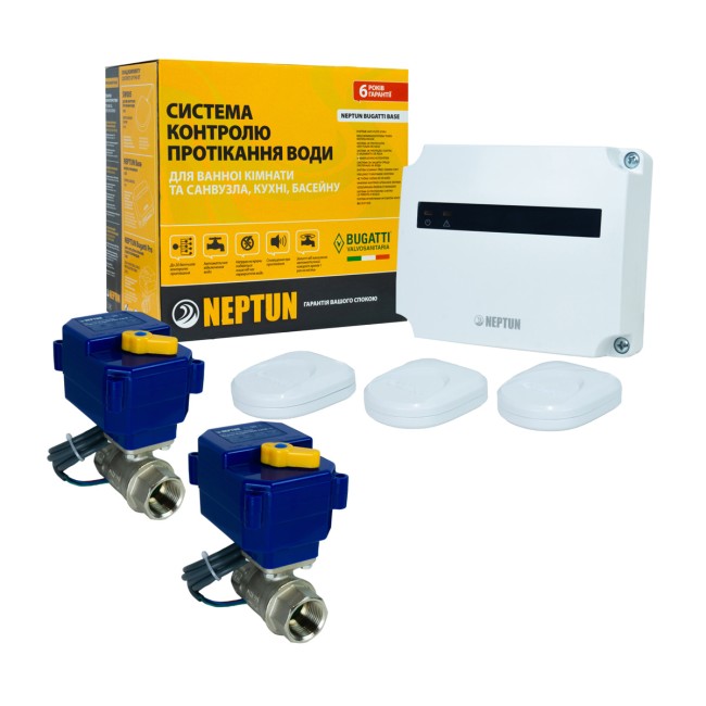 Neptun Bugatti Base 3/4 (TR) — это оборудование от самого известного на рынке Украины бренда систем защиты от протечек французского концерна Groupe Atlantic. Устройство производится на заводе «Atlantic Group Izmir Radyator Systemleri Dignity. in Tij. A.Sh.» в Турции. Для обеспечения высокого качества в комплекте используются итальянские полнопроходные краны Bugatti из горячекованной латуни. Это надежное и эффективное решение для защиты вашего помещения от протекания.