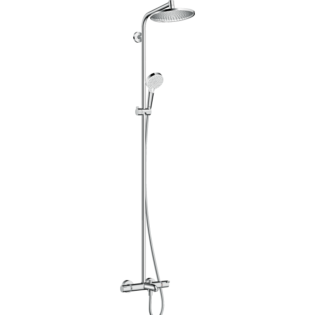 Душова система hansgrohe Crometta S 240 Showerpipe з термостатом 27320000 хром — це ідеальне рішення для тих, хто цінує стиль, комфорт і надійність у ванній кімнаті. Виготовлена з високоякісних матеріалів, ця душова система поєднує сучасний дизайн і передові технології, забезпечуючи неперевершений рівень задоволення від водних процедур. Лаконічний та елегантний хромований корпус додає інтер’єру розкішного блиску, а фірмові технології hansgrohe гарантують довгу та безперебійну роботу виробу. Основною перевагою душової системи є великий верхній душ Ø240 мм, який створює відчуття приємного «дощового» ефекту, рівномірно розподіляючи воду по всій поверхні тіла. Завдяки інноваційній технології AirPower, вода насичується повітрям, стає м’якішою та економно витрачається. Термостатичний змішувач миттєво реагує на зміну тиску води, забезпечуючи стабільну температуру та захист від перепадів, що гарантує безпеку навіть для дітей. Ергономічна ручка дозволяє легко перемикати режими душу, а система QuickClean значно спрощує догляд за поверхнею, запобігаючи утворенню вапняного нальоту. Встановлення hansgrohe Crometta S 240 Showerpipe з термостатом 27320000 максимально просте та не потребує складних монтажних робіт. Обирайте душову систему hansgrohe Crometta S 240 Showerpipe для створення сучасної, комфортної та безпечної ванної кімнати. Замовляйте онлайн із доставкою по всій Україні. Гарантія виробника — 5 років! Відчуйте справжній комфорт від hansgrohe вже сьогодні!