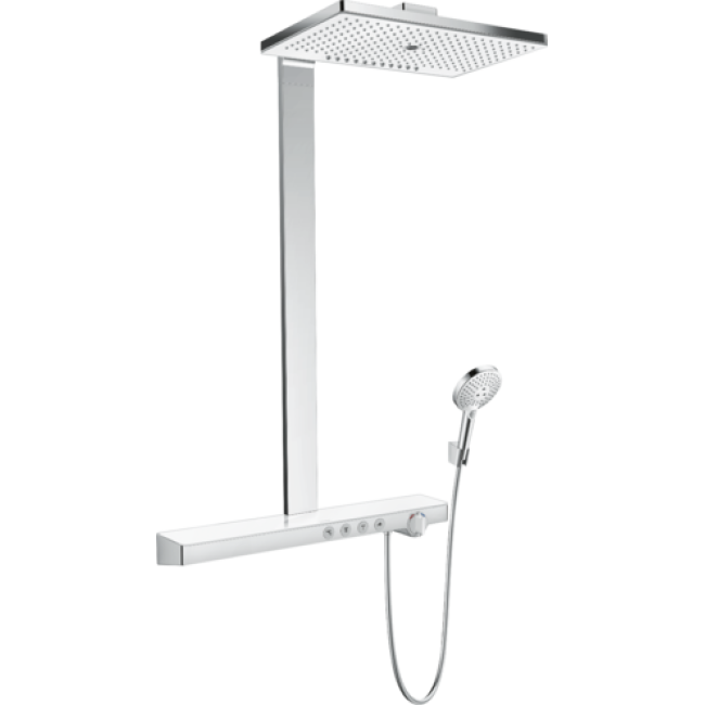 Відкрийте для себе новий рівень комфорту та розкоші у ванній кімнаті разом із душовою системою hansgrohe Rainmaker Select Showerpipe 460 3jet EcoSmart з термостатом 27029400 білий/хром. Ця сучасна душова система від світового лідера сантехнічної індустрії hansgrohe поєднує інноваційні технології, стильний дизайн та неперевершену якість виконання. Головна особливість моделі — ультраширока верхня душова лійка Rainmaker Select 460 мм з трьома індивідуальними режимами струменю: Rain, MonoRain та RainStream. Вибирайте найбільш комфортний тип душування одним натисканням кнопки Select, насолоджуючись м’яким дощем, тонким потужним струменем чи інтенсивним потоком для максимального розслаблення. Завдяки технології EcoSmart, система економить до 60% води без втрати якості струменю, що дозволяє зберігати ресурси та зменшувати витрати. Інтегрований термостат Ecostat гарантує стабільну температуру води та захищає від перепадів, забезпечуючи абсолютну безпеку для всієї родини. Дизайн у благородному поєднанні білого і хрому гармонійно впишеться у будь-який інтер’єр ванної кімнати, а високоякісні матеріали гарантують довговічність і легкість догляду. Замовляйте душову систему hansgrohe Rainmaker Select Showerpipe 460 3jet EcoSmart з термостатом 27029400 онлайн на нашому сайті! Ми здійснюємо швидку та надійну доставку по всій Україні, а офіційна гарантія 5 років — додаткова впевненість у Вашому виборі. Втілюйте мрії про ідеальний душ разом із hansgrohe!