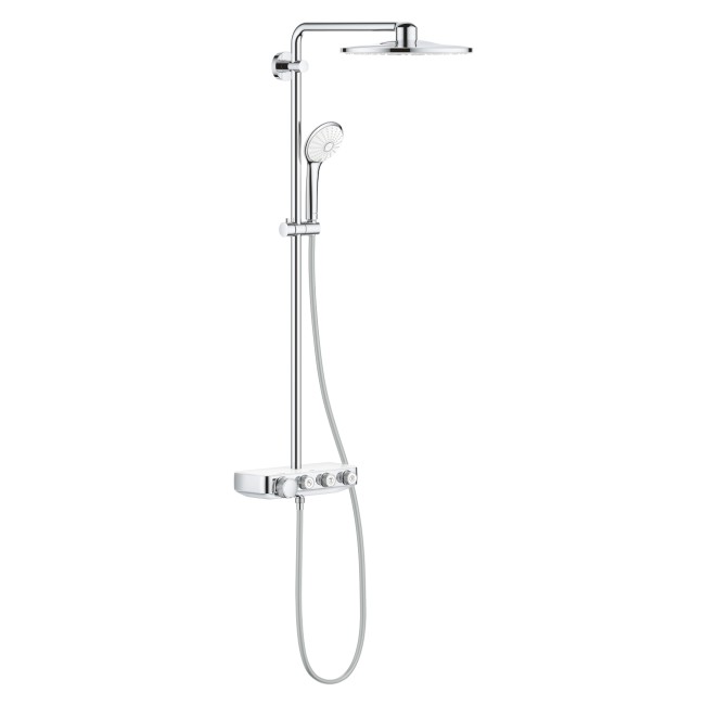 Оновіть свою ванну кімнату за допомогою душової системи, яка ідеально виглядає і готова порадувати вас бездоганним душем в будь-який час. Інноваційна технологія GROHE SmartControl дозволяє перемикатися між режимами струменя і комбінувати потоки верхнього і ручного душа, так само як і регулювати напор води за допомогою простого натискання і повороту кнопки.